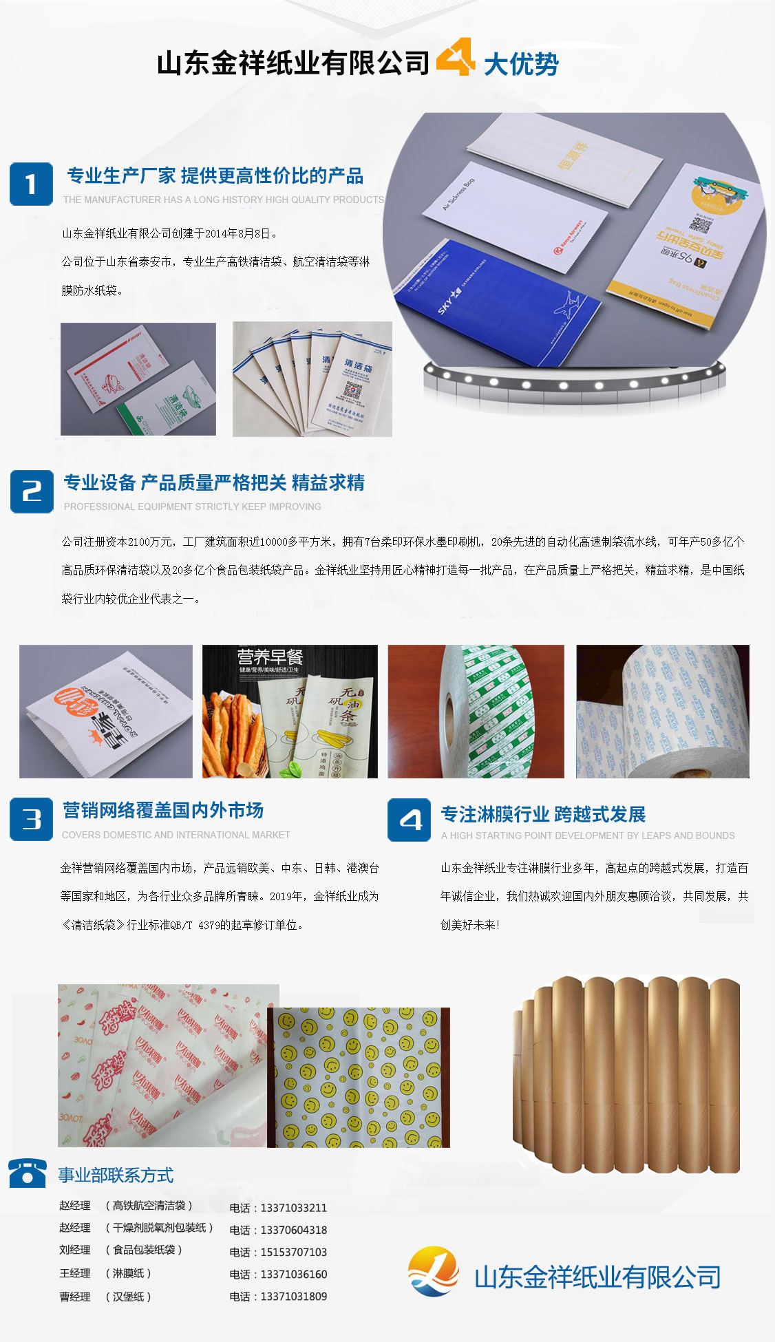 山東金祥紙業(yè)有限公司創(chuàng)建于2014年8月8日,公司位于山東泰安,專業(yè)生產(chǎn)高鐵清潔袋、航空清潔袋等淋膜防水紙袋。公司注冊資本2100萬元,工廠建筑面積近10000多平方米,擁有7臺柔印環(huán)保水墨印刷機,20條先進的自動化高速制袋流水線,可年產(chǎn)50多億個高品質(zhì)環(huán)保清潔袋以及20多億個食品包裝紙袋產(chǎn)品。金祥紙業(yè)堅持用匠心精神打造每一批產(chǎn)品,在產(chǎn)品質(zhì)量上嚴格把關(guān),精益求精,是中國紙袋行業(yè)內(nèi)較優(yōu)企業(yè)代表之一。金祥營銷網(wǎng)絡(luò)覆蓋國內(nèi)市場,產(chǎn)品遠銷歐美、中東、日韓、港澳臺等國家和地區(qū),為各行業(yè)眾多品牌所青睞。2019年,金祥紙業(yè)成為《清潔紙袋》行業(yè)標(biāo)準QB/T 4379的起草修訂單位。